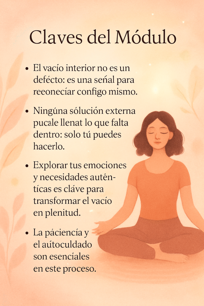 - Claves del Módulo: Resumen de los aprendizajes principales para integrar lo trabajado.